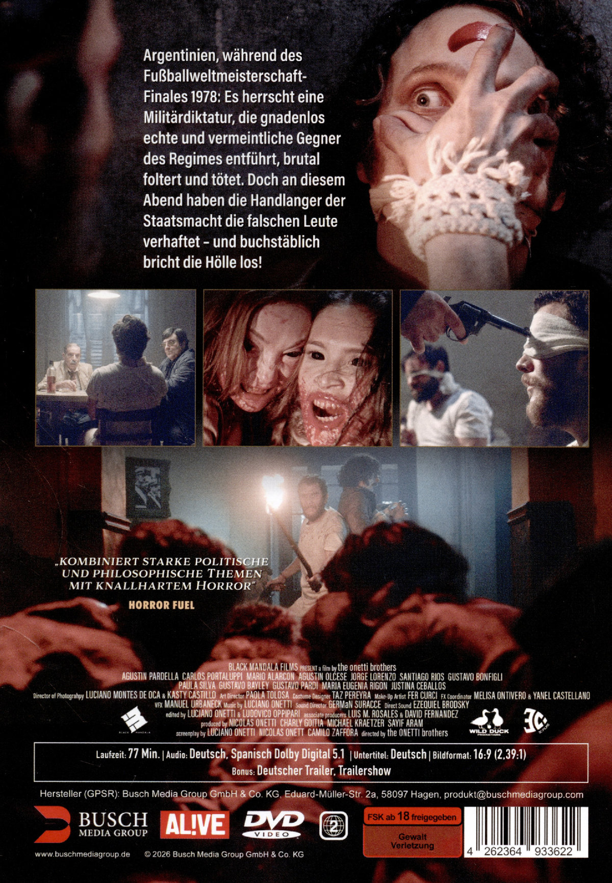 Ultraharter Horrorthriller für Fans von HOSTEL und WHAT THE WATERS LEFT BEHIND. Argentinien, während des Fußballweltmeisterschaft-Finales 1978: Es herrscht eine Militärdiktatur, die gnadenlos echte und vermeintliche Gegner des Regimes entführt, brutal foltert und tötet. Doch an diesem Abend haben die Handlanger der Staatsmacht die falschen Leute verhaftet – und buchstäblich bricht die Hölle los!