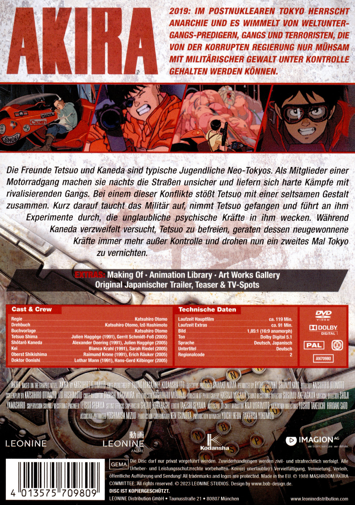 "Die Phänomenale Animationskunst mit all ihren Charakteristika machen AKIRA zu einem Kult-Klassiker." (NY Times)