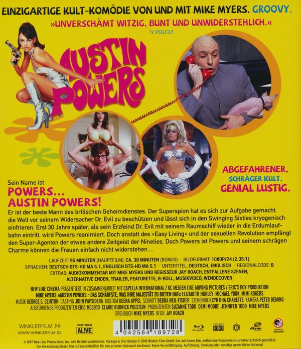 Sein Name ist Powers … Austin Powers! Er ist der beste Mann des britischen Geheimdienstes. Der Superspion hat es sich zur Aufgabe gemacht, die Welt vor seinem Widersacher Dr. Evil zu beschützen und lässt sich in den Swinging Sixties kryogenisch einfrieren. Erst 30 Jahre später, als sein Erzfeind Dr. Evil mit seinem Raumschiff wieder in die Erdumlaufbahn eintritt, wird Powers reanimiert. Doch anstatt des „Easy Living“ und der sexuellen Revolution empfängt den Super-Agenten der etwas andere Zeitgeist der Nineties. Doch Powers ist Powers und seinem schrägen Charme können die Frauen einfach nicht wiederstehen …