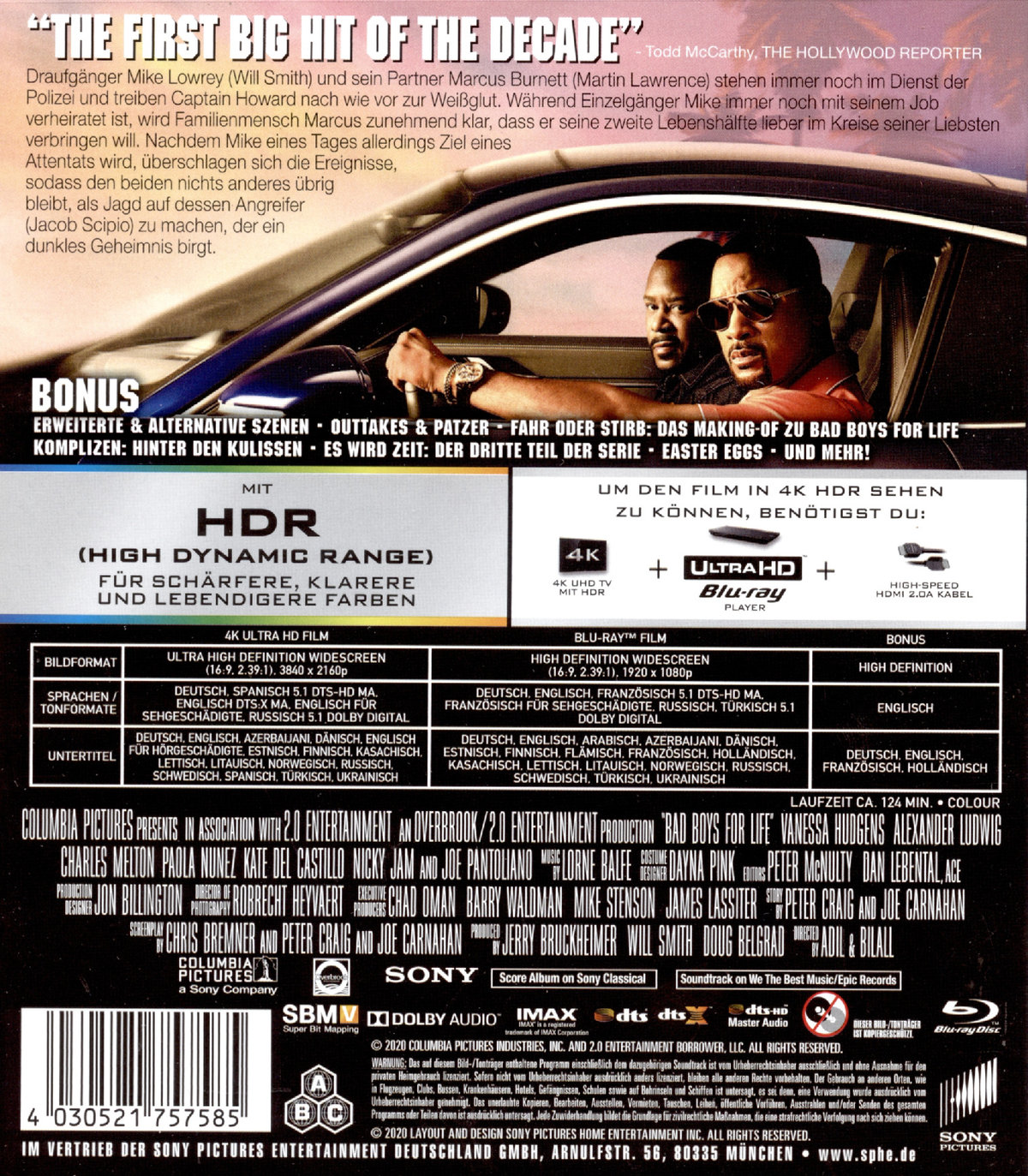 Die Bad Boys Mike Lowrey (Will Smith) und Marcus Burnett (Martin Lawrence) sind gemeinsam zurück für einen letzten großen Ritt in der mit Spannung erwarteten Actionkomödie BAD BOYS FOR LIFE.