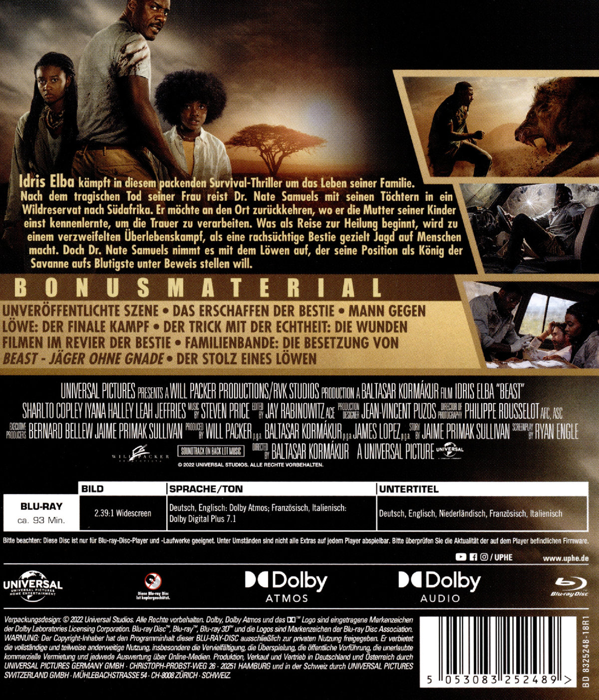 Idris Elba kämpft in diesem packenden Survival-Thriller um das Leben seiner Familie. Nach dem tragischen Tod seiner Frau reist Dr. Samuels mit seinen Töchtern in ein Wildreservat nach Südafrika. Er möchte an den Ort zurückkehren, wo er die Mutter seiner Kinder einst kennenlernte, um die Trauer zu verarbeiten. Was als Reise zur Heilung beginnt, wird zu einem verzweifelten Überlebenskampf, als eine rachsüchtige Bestie gezielt Jagd auf Menschen macht. Doch Dr. Samuels nimmt es mit dem Löwen auf, der seine Position als König der Savanne aufs Blutigste unter Beweis stellt.