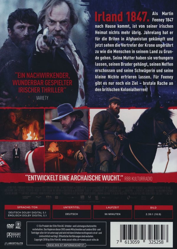 Irland 1847. Nachdem Martin Feeney in Afghanistan für das britische Königreich gekämpft hat, kehrt er als Deserteur zurück in seine irische Heimat und findet diese in schlimmster Not vor. Die Kartoffelfäule hat die Ernte vernichtet, die Hungersnot hat über eine Million Menschen dahingerafft. Auch Martins Familie ist betroffen: Die Mutter ist unter den Opfern, der Bruder wurde von der britischen Besatzungsmacht zum Tode verurteilt. Martins Plan, mit seiner Schwägerin und ihren Kindern in die USA auszuwandern, scheitert, und der Anblick seiner sterbenden letzten Verwandten raubt ihm beinahe den Lebensmut. In seiner Verzweiflung beginnt er einen blutigen Rachefeldzug quer durch die soziale und politische Hierarchie Irlands. Um den wütenden Mann aufzuhalten, heuern die Briten Hannah an, der mit Martin in Afghanistan gekämpft hat.