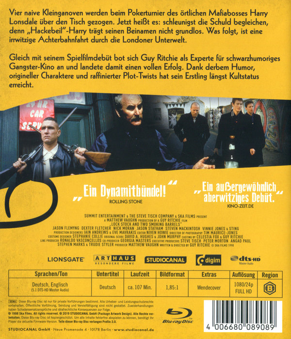 Vier naive Kleinganoven werden beim Pokerturnier des örtlichen Mafiabosses Harry Lonsdale über den Tisch gezogen und müssen schleunigst ihre Schuld begleichen, denn „Hackebeil“-Harry trägt seinen Beinamen nicht grundlos. Was folgt, ist eine irrwitzige Achterbahnfahrt durch die Londoner Unterwelt.