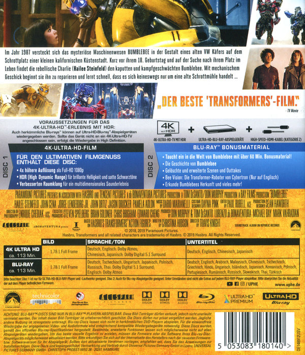 Taucht ein in die Welt von Bumblebee mit über 60 Min. Bonusmaterial;