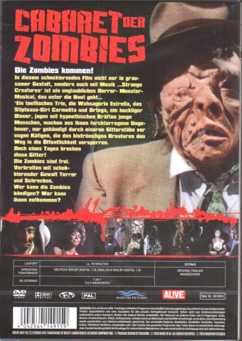 Die Zombies kommen! In diesem schockierenden Film nicht nur in grausamer Gestalt, sondern auch mit Musik! Ein unglaubliches Horror-Monster-Musical, das unter die Haut geht... Ein teuflisches Trio, die Wahrsagerin Estrella, das Striptease-Girl Carmelita und Ortega, ein buckliger Diener, jagen mit hypnotischen Kräften junge Menschen, machen aus ihnen furchterregende Ungeheuer, nur gebändigt durch eiserne Gitterstäbe, die den blutrünstigen Kreaturen den Weg in die Öffentlichkeit versperren. Doch eines Tages brechen diese Gitter! Die Zombies sind frei. Verbreiten mit schockierender Gewalt Terror und Schrecken. Wer kann die Zombies bändigen? Wer kann ihnen entkommen?.