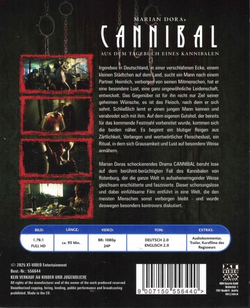 Marian Doras schockierendes Drama CANNIBAL beruht lose auf dem berühmt berüchtigten Fall des Kannibalen von Rotenburg, der die ganze Welt in aufsehenerregender Weise gleichsam erschütterte und faszinierte. Dieser schonungslose und dabei einfühlsame Film entführt in eine Welt, die den meisten Menschen sonst verborgen bleibt - und wurde deswegen besonders kontrovers diskutiert