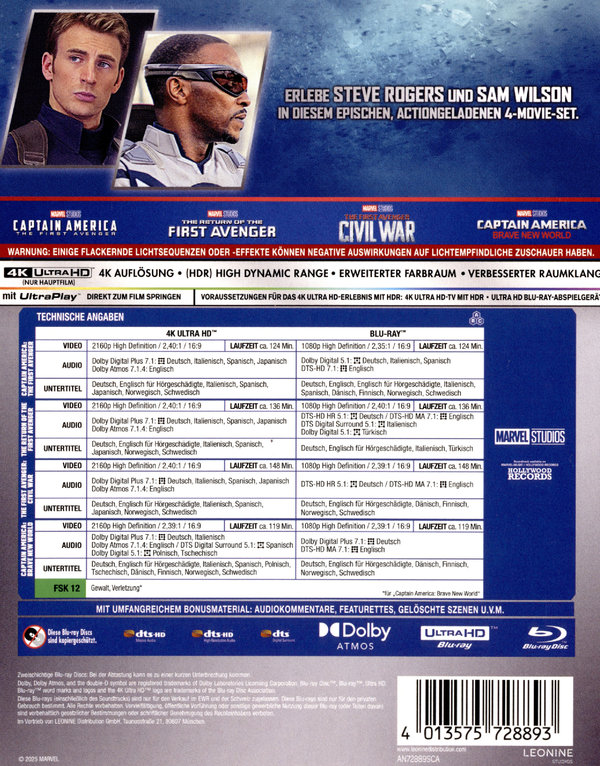 Produktinformationen "Captain America - 4-Movie-Collection (4 4K Ultra HDs) (+ 4 Blu-rays)"
