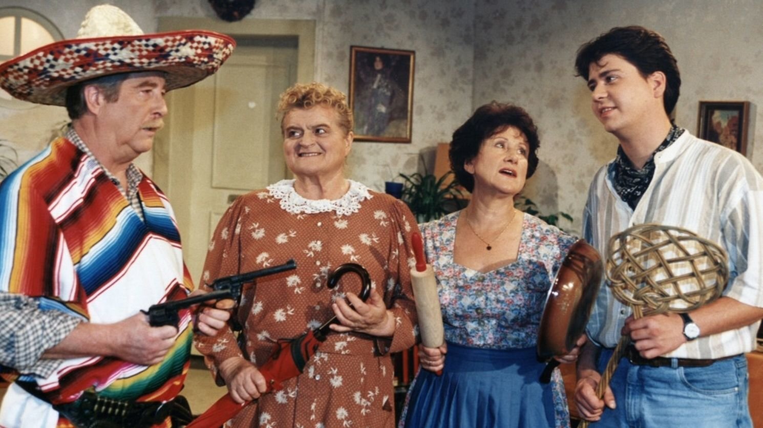 Das in der 4. Staffel spielende Ensemble der Jahre 1996-1997 besteht aus Bernd Helfrich, Mona Freiberg-Helfrich, Amsi Kern, Hans Stadlbauer, Egon Biscan, Michaela Heigenhauser, Rupert Pointvogl, Kathi Leitner, Georg Einerdinger, Andreas Kern, Erich J. Pflüger, Monika Dahlberg, Traudl Oberhorner, Werner Rom, Erni Singerl, Markus Neumaier, Evi Voigt, Susi Brantl, Gabriele Preuß, Christian Kreß, Nini von Quast, Alexander-Klaus Stecher, Rolf Kuhsiek, Viola Thaller, Simone Streifeneder, Claudia Kleiber, Abdon Ziegler, Anja Zelfel, Rollie Braun, Edith Maier und Gerd Fitz. Fernsehjuwelen präsentiert nach und nach alle TV-Staffeln, die im Fernsehen liefen. Ein langersehnter Wunsch wird wahr für alle Freunde des beliebten Volkstheaters.