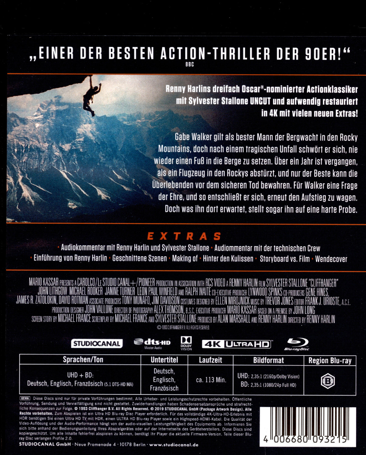 Renny Harlins dreifach Oscar®-nominierter Actionklassiker mit Sylvester Stallone und John Lithgow erscheint nun erstmals in aufwendiger 4K-Restaurierung auf DVD, Blu-ray und 4K UHD.