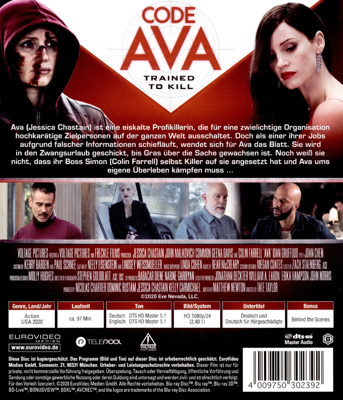 Ava (Jessica Chastain) ist eine eiskalte Profikillerin, die für eine zwielichtige Organisation hochkarätige Zielpersonen auf der ganzen Welt ausschaltet. Doch als einer ihre Jobs aufgrund falscher Informationen schiefläuft, wendet sich für Ava das Blatt. Sie wird in den Zwangsurlaub geschickt, bis Gras über die Sache gewachsen ist. Noch weiß sie nicht, dass ihr Boss Simon (Colin Farrell) selbst Killer auf sie angesetzt hat und Ava ums eigene Überleben kämpfen muss…