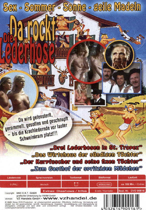 Deftig, deftig dieser Streifen! Da geht es ungeheuer zur Sache. Da bleibt kein Auge trocken! Drei Oberbayern sollen einen Zuchtstier zur Ausstellung nach Avignon bringen und landen in St. Tropez. Dort sorgen die "Lederhosen" für helle Aufregung. Bei den barbusigen Strandschönheiten ebenso wie bei Oscar, dem Gendarm von St. Tropez. Zuerst wird das Wohnmobil mit dem Stier gestohlen, dann geraten die Bayern in einen Postraub. Eine wilde Verfolgungsjagd beginnt, eine "Lederhose" wird an Bord einer Yacht nach allen Regeln der Kunst verführt, und der Stier frißt indessen in aller Seelenruhe 30 Millionen Franc. Es geht so richtig rund in diesem Film. Und Sex wird ganz groß geschrieben. Kein Wunder bei "Drei Lederhosen in St. Tropez".