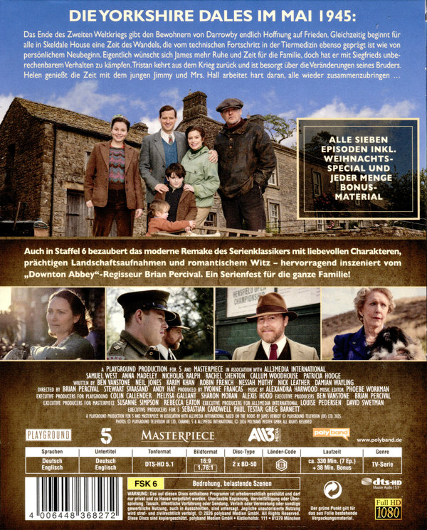 Auch in Staffel 6 bezaubert das moderne Remake des Serienklassikers mit liebevollen Charakteren, prächtigen Landschaftsaufnahmen und romantischem Witz – hervorragend inszeniert vom „Downton Abbey“-Regisseur Brian Percival.