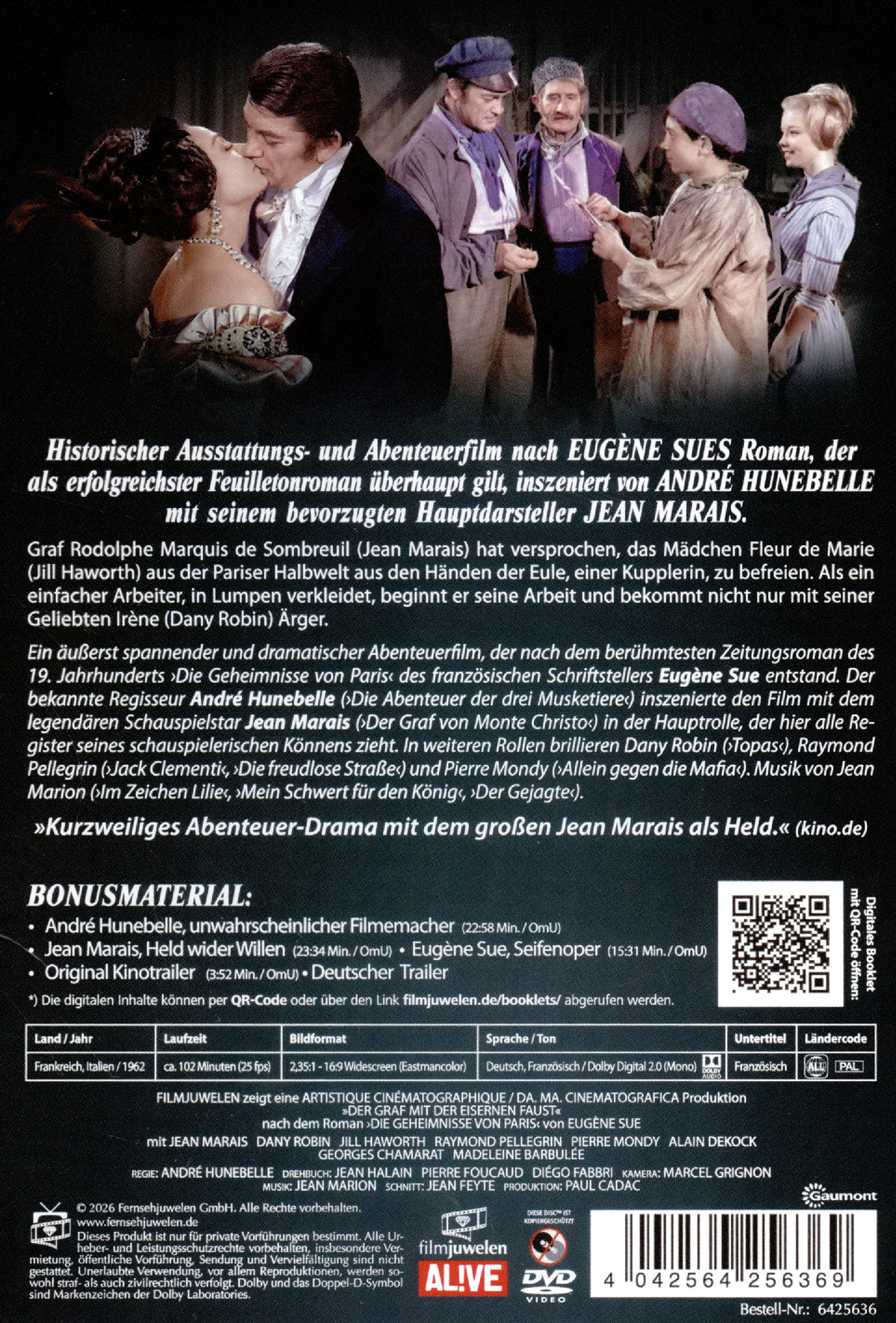 Digitales Booklet (online abrufbar); André Hunebelle; unwahrscheinlicher Filmemacher (ca. 23 Min. / OmU); Jean Marais; Held wider Willen (ca. 24 Min. / OmU); Eugène Sue; Seifenoper (ca. 15 Min. / OmU); Original Kinotrailer (OmU); deutscher Trailer; weitere Highlights; Wendecover
