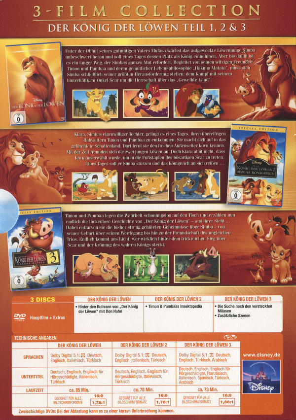 Produktinformationen "Der König der Löwen - Dreierpack (Disney Classics + 2. & 3.Teil) [3 DVDs] (DVD)"