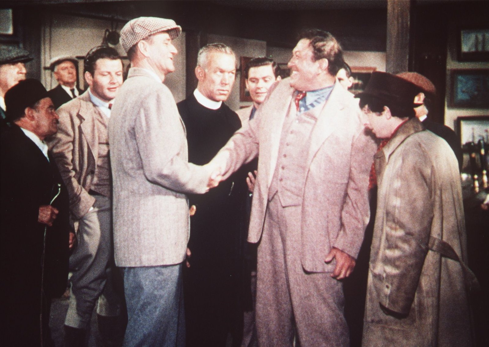 John Wayne, Maureen O'Hara, Barry Fitzgerald, Ward Bond, Victor McLaglen, Mildred Natwick, Arthur Shields
