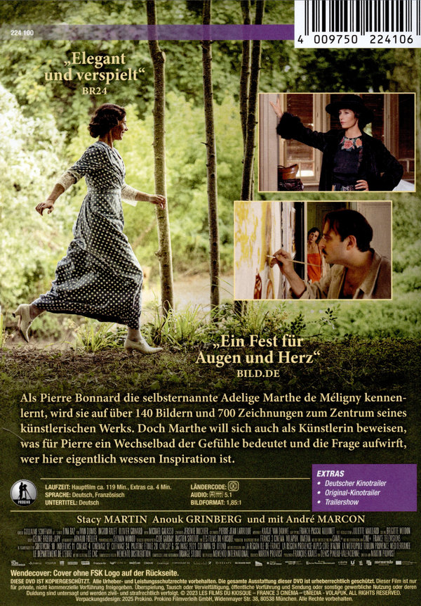 Als Pierre Bonnard die selbsternannte Adelige Marthe de Méligny kennenlernt, wird sie auf über 140 Bildern und 700 Zeichnungen zum Zentrum seines künstlerischen Werks. Doch Marthe will sich auch als Künstlerin beweisen, was für Pierre ein Wechselbad der Gefühle bedeutet und die Frage aufwirft, wer hier eigentlich wessen Inspiration ist. Nach „Séraphine“ und „Violette“ zeigt Martin Provost erneut seine Liebe zu unterschätzten Künstlerinnen. In „DIE BONNARDS – MALEN UND LIEBEN“ erzählt er die Geschichte von Pierre und Marthe, ihrer leidenschaftlichen Beziehung und der Entstehung ihrer Gemälde.