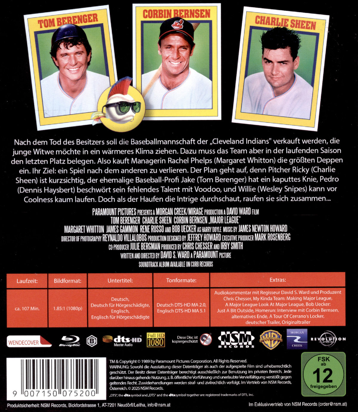Audiokommentar von Drehbuchautor und Regisseur David S. Ward und Produzent Chris Chesser; "My Kinda Team" (Englisch mit optionalen deutschen & englischen Untertiteln); "A Major League Look at Major League" ; Featurette (Englisch mit optionalen deutschen & englischen Untertiteln); "Bob Uecker: Just A Bit Outside" ; Featurette (Englisch mit optionalen deutschen & englischen Untertiteln); Homerun: Interview mit Corbin Bernsen (Englisch mit optionalen deutschen & englischen Untertiteln) [BD only]; Alternatives Ende (Englisch mit optionalen deutschen & englischen Untertiteln); "A Tour of Cerrano's Locker"(Englisch mit optionalen deutschen & englischen Untertiteln); Deutscher Trailer; Originaltrailer
