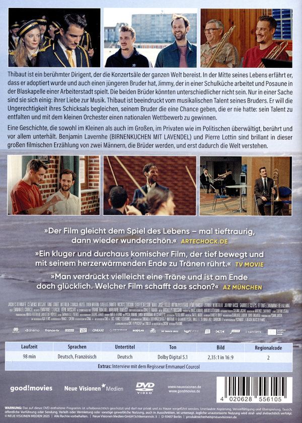 Thibaut ist ein berühmter Dirigent, der die Konzertsäle der ganzen Welt bereist. In der Mitte seines Lebens erfährt er, dass er adoptiert wurde und auch einen jüngeren Bruder hat, Jimmy, der in einer Schulküche arbeitet und Posaune in der Blaskapelle einer Arbeiterstadt spielt. Die beiden Brüder könnten unterschiedlicher nicht sein. Nur in einer Sache sind sie sich einig: ihrer Liebe zur Musik. Thibaut ist beeindruckt vom musikalischen Talent seines Bruders. Er will die Ungerechtigkeit ihres Schicksals begleichen, seinem Bruder die eine Chance geben, die er nie hatte: sein Talent zu entfalten und mit dem kleinen Orchester einen nationalen Wettbewerb zu gewinnen.