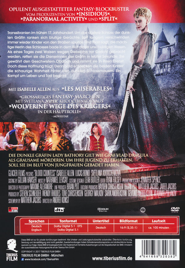 Transsilvanien im frühen 17. Jahrhundert. Um das düstere Schloss in der idyllischen Provinz ranken sich blutige Gerüchte. Denn schon seit langem verschwinden immer wieder Kinder in der Gegend spurlos. Und man sagt, die mächtige Gräfin Barthory bade in dem Blut der unschuldigen Kinder. Eines Tages werden in der Stadt zwei junge Waisen wegen Diebstahls vor Gericht gebracht. Doch in letzter Sekunde werden das Mädchen und der Junge von den Dienerinnen der Gräfin auf das Schloss gebracht. Sie ist bereit, den Geschwistern Obdach zu gewähren und sie in ihren Dienst zu nehmen. Doch diese Hoffnung trügt. Denn bald entdecken die beiden Kinder die schaurige Wahrheit hinter den dunklen Schlossmauern. Ein Kampf um Leben und Tod beginnt.