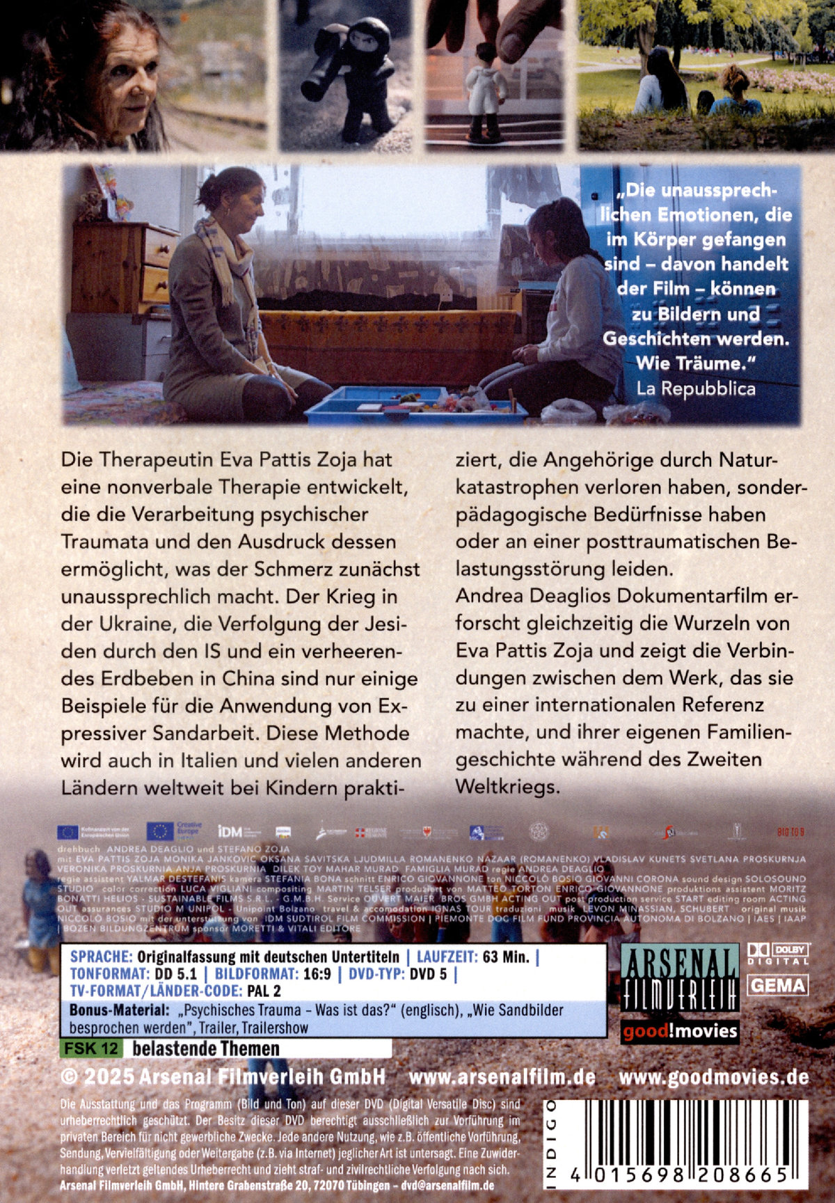 EINE MILLION SANDKÖRNCHEN begleitet die Psychotherpeutin Eva Pattis Zoja auf ihrem ungewöhnlichen Weg im Engagement für psychische Notsituationen. Ein Erdbeben in China, der Genozid an der jesidischen Bevölkerung im Irak, der Krieg in der Ukraine. Eine innovative Therapiemethode hilft den Opfern psychischer Traumata das Unsagbare ihres Erlebens auch ohne Worte auszudrücken. Der Dokumentarfilm nähert sich den unbewussten Bildern derjenigen, die globale Konflikte überlebt haben. Eine Reflexion über Trauma und dessen Tendenz sich über Generationen hin fortzusetzen durchzieht die Erzählung. In einer Parallelhandlung wird Eva Pattis Zoja Familiengeschichte erzählt.