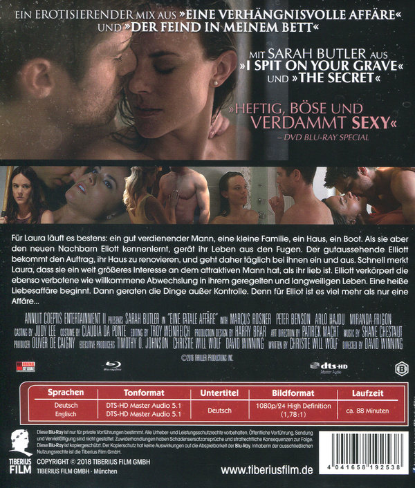Für Laura läuft es bestens; ein gut verdienender Mann, eine kleine Familie, ein Haus, ein Boot. Als sie aber den neuen Nachbarn Elliot kennenlernt, gerät ihr Leben aus den Fugen. Der gutaussehende Elliott bekommt den Auftrag, ihr Haus zu renovieren und geht daher täglich bei Ihnen ein und aus. Schnell merkt Laura, dass sie ein weit größeres Interesse an dem attraktiven Mann hat, als ihr lieb ist. Elliott verkörpert die ebenso verbotene wie willkommene Abwechslung in ihrem geregelten und langweiligen Leben. Eine heiße Liebesaffäre beginnt. Dann geraten die Dinge außer Kontrolle. Denn für Elliot ist es viel mehr als nur eine Affäre...