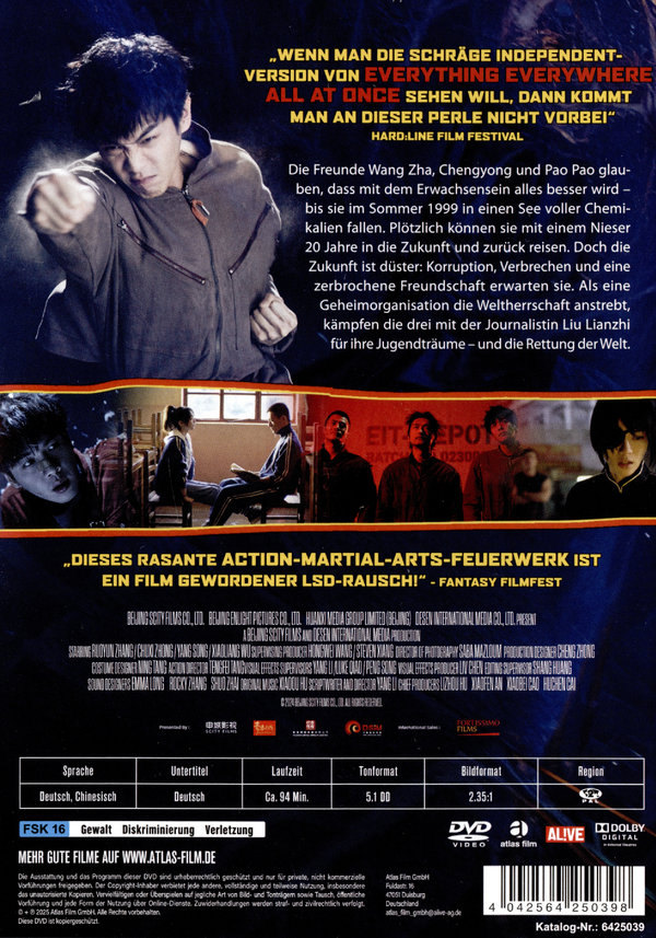 Für die Freunde Wang Zha, Chengyong und Pao Pao steht fest: Alles wird besser, wenn sie erst einmal erwachsen sind … bis zu jenem verhängnisvollen Tag im Sommer 1999. Denn als sie in einen See voller bunter Chemikalien fallen, ändert sich ihr bislang überschaubares Leben schlagartig. Mit nichts weiter als einem Nieser können sie sich 20 Jahre in die Zukunft und zurück katapultieren. Was als spannendes Abenteuer beginnt, entpuppt sich allerdings als enttäuschende Realität: Ihre erwachsenen Ichs sind nicht nur ganz anders als erhofft, sondern auch von Korruption, organisiertem Verbrechen und Verlust gezeichnet. Und schlimmer noch: Ihre einst unzertrennliche Freundschaft ist zerbrochen! Als wäre all das noch nicht genug, trachtet eine gefährliche Geheimorganisation in der Zukunft danach, die Weltherrschaft an sich zu reißen. Also müssen die drei ehemals besten Freunde gemeinsam mit der Enthüllungsjournalistin Liu Lianzhi alles dafür tun, die Welt zu retten – für die Träume ihrer Jugend und die Chance auf ein besseres Leben.