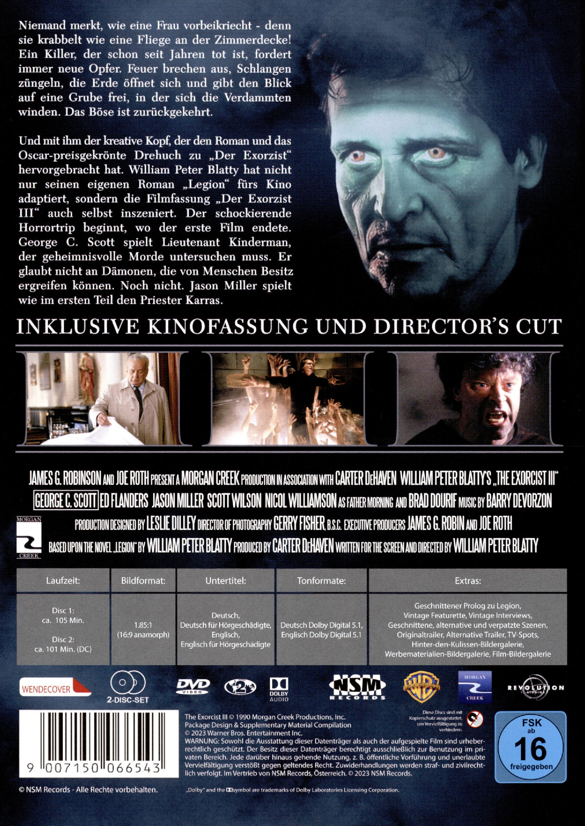 William Peter Blatty hat nicht nur seinen eigenen Roman Legion fürs Kino adaptiert, sondern die Filmfassung Der Exorzist III auch selbst inszeniert. Der schockierende Horrortrip beginnt, wo der erste Film endete. George C. Scott spielt Lieutenant Kinderman, der geheimnisvolle Morde untersuchen muss. Er glaubt nicht an Dämonen, die von Menschen Besitz ergreifen können. Noch nicht. Jason Miller spielt wie im ersten Teil den Priester Karras. Und in kleinen Rollen gibt es Samuel L. Jackson, den Basketball-Profi Patrick Ewing und andere Gaststars zu entdecken.