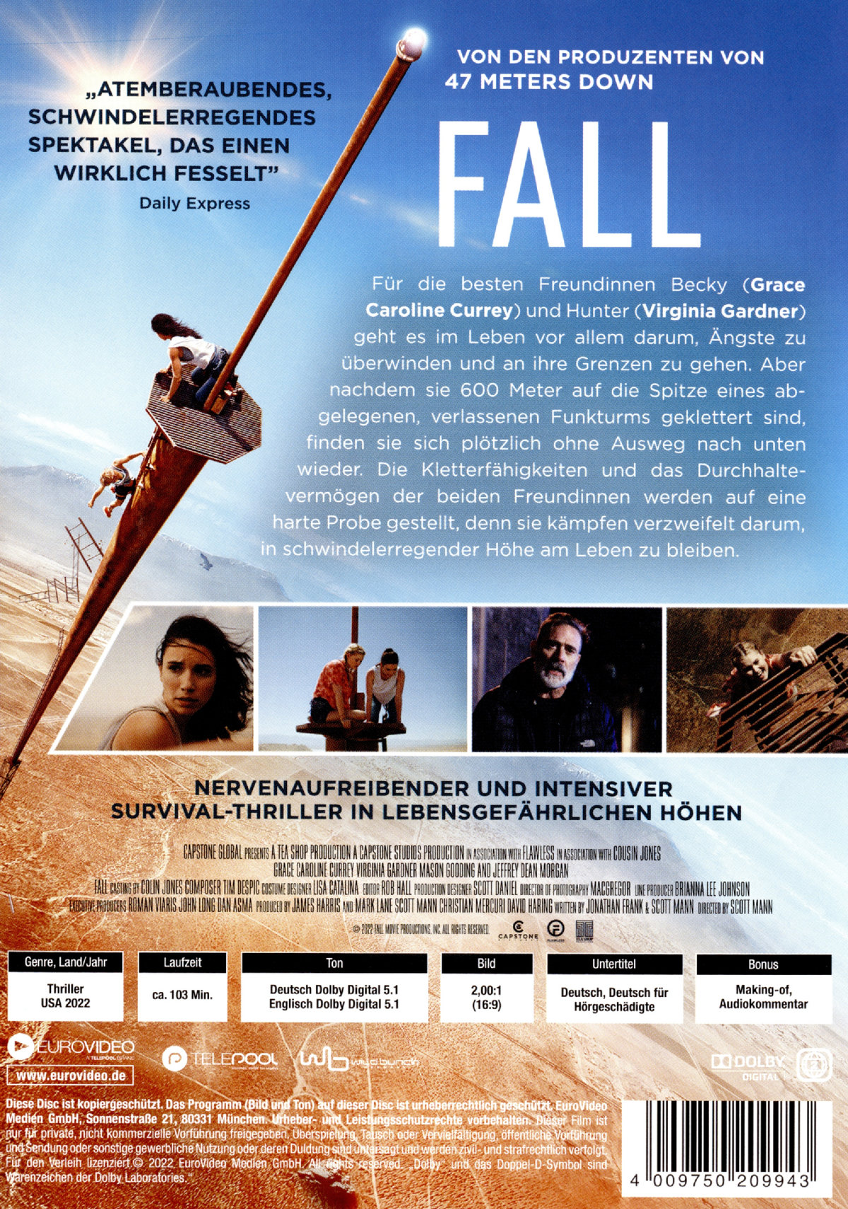Für die besten Freundinnen Becky (Grace Caroline Currey) und Hunter (Virginia Gardner) geht es im Leben vor allem darum, Ängste zu überwinden und an ihre Grenzen zu gehen. Aber nachdem sie 600 Meter auf die Spitze eines abgelegenen, verlassenen Funkturms geklettert sind, finden sie sich plötzlich ohne Ausweg nach unten wieder. Die Kletterfähigkeiten und das Durchhaltevermögen der beiden Freundinnen werden auf eine harte Probe gestellt, denn sie kämpfen verzweifelt darum, in schwindelerregender Höhe am Leben zu bleiben, um einen Ausweg zu finden ...