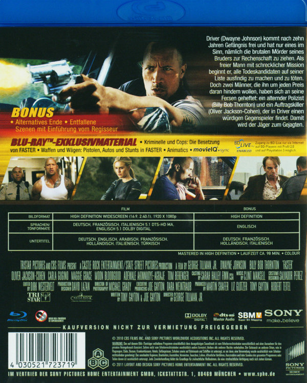 Waffen und Wagen: Pistolen, Autos und Stunts in FASTER;