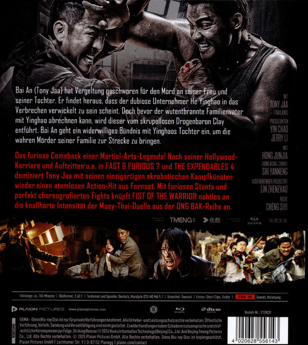 Das furiose Comeback einer Martial-Arts-Legende! Nach seiner Hollywood-Karriere und Auftritten u.a. in FAST & FURIOUS 7 und THE EXPENDABLES 4 dominiert Tony Jaa mit seinen einzigartigen akrobatischen Kampfkünsten wieder einen atemlosen Action-Hit aus Fernost. Mit furiosen Stunts und perfekt choreografierten Fights knüpft RETURN OF THE WARRIOR nahtlos an die knallharte Intensität der Muay-Thai-Duelle aus der ONG BAK-Reihe an.