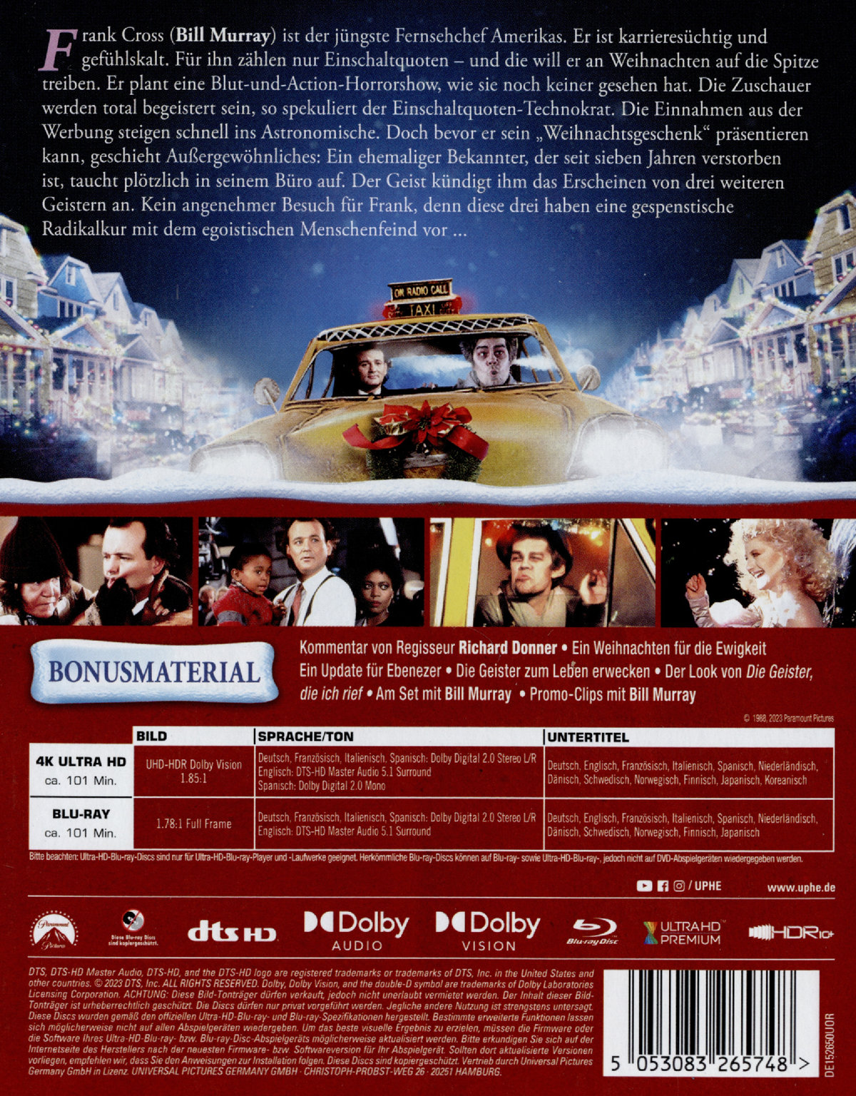 Enthält 4K UHD & Blu-ray,Kommentar von Regisseur Richard Donner,Ein Weihnachten für die Ewigkeit,Ein Update für Ebenezer,Die Geister zum Leben erwecken,Der Look von "Die Geister, die ich rief",Am Set mit Bill Murray,Showest-Clips