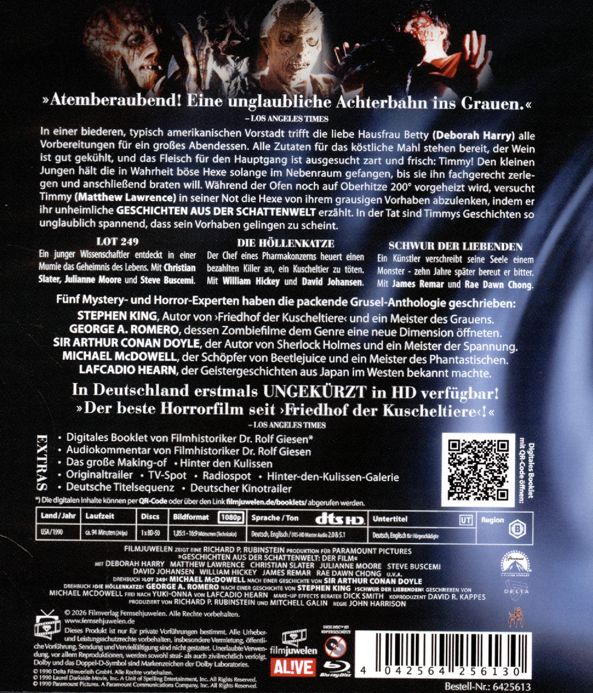 Vier Mystery- und Horror-Experten haben die Episoden dieser Grusel-Anthologie geschrieben: Lafcadio Hearn, der Geistergeschichten aus Japan im Westen bekannt machte, Arthur Conan Doyle, der Schöpfer von Sherlock Holmes, Stephen King und Drehbuch-Autor George A. Romero, dessen Zombiefilme dem Genre eine neue Dimension öffneten. In der Rahmenhandlung entführt eine Hexe einen kleinen Jungen, der ihr Geschichten erzählt, um nicht als Festbraten in ihrem Ofen zu enden: Da wird eine Mumie zu neuem Leben erweckt, da fällt ein Profikiller einer teuflischen Katze zum Opfer, da erkennt ein New Yorker Künstler, dass seine Liebste ein Ungeheuer ist.
