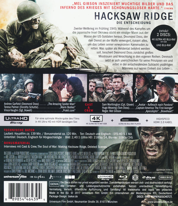 Hacksaw Ridge - Die Entscheidung (4K Ultra HD)