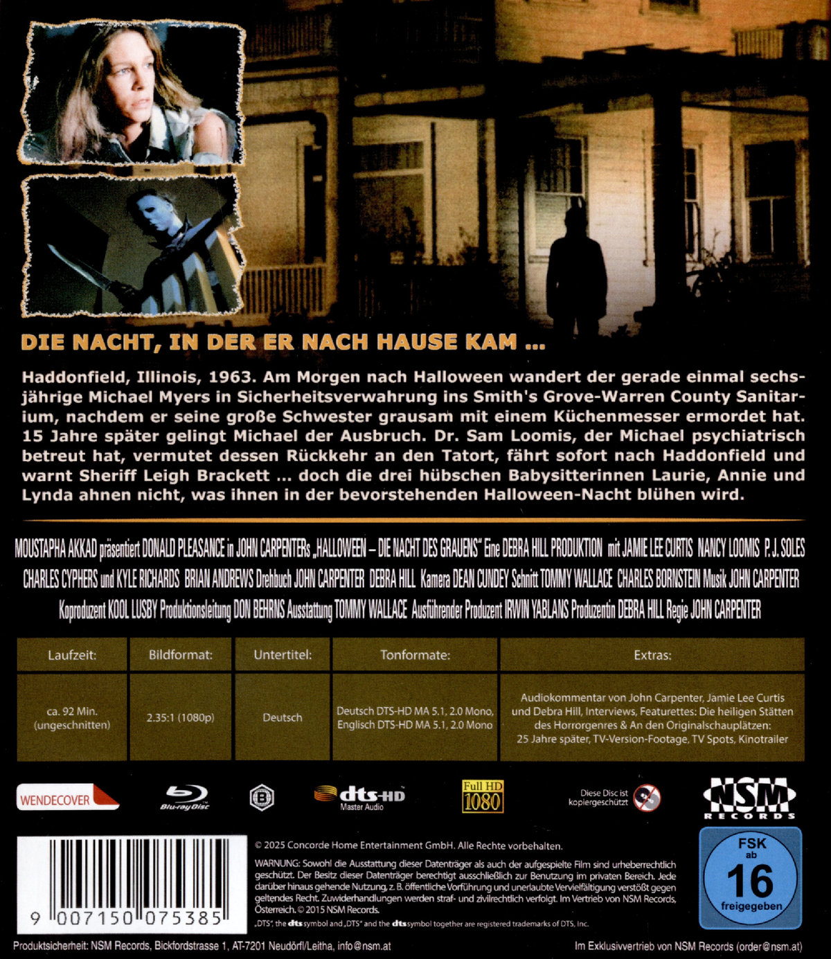 Audiokommentar von John Carpenter; Jamie Lee Curtis und Debra Hill; Interviews; Featurettes: Die heiligen Stätten des Horrorgenres & An den Originalschauplätzen: 25 Jahre später; TV-Version-Footage; TV Spots; Kinotrailer