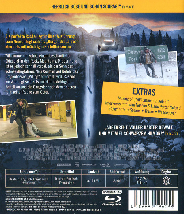 Willkommen in Kehoe! Das Thermometer zeigt Minus 10 Grad in dem glitzernden Skigebiet in den Rocky Mountains. Der Schneepflugfahrer Nels Coxman (Liam Neeson) führt mit seiner Familie ein beschauliches Leben, bis sein Sohn sich mit dem schillernden Drogenboss Viking (Tom Bateman) einlässt – und auf dessen Befehl ermordet wird. Rasend vor Wut legt sich Nels mit dem mächtigen Kartell an. Und auch wenn sein Wissen über Mord und Totschlag bislang nur aus Krimis stammt: Ein Drogengangster nach dem anderen fällt seiner Rache zum Opfer. Während Nels immer mehr Männer verschwinden lässt, macht Viking seinen langjährigen Rivalen White Bull (Tom Jackson) verantwortlich. Die Situation eskaliert in einen wahnwitzigen Bandenkrieg, und die strahlenden Hänge der Kleinstadt leuchten bald blutrot.