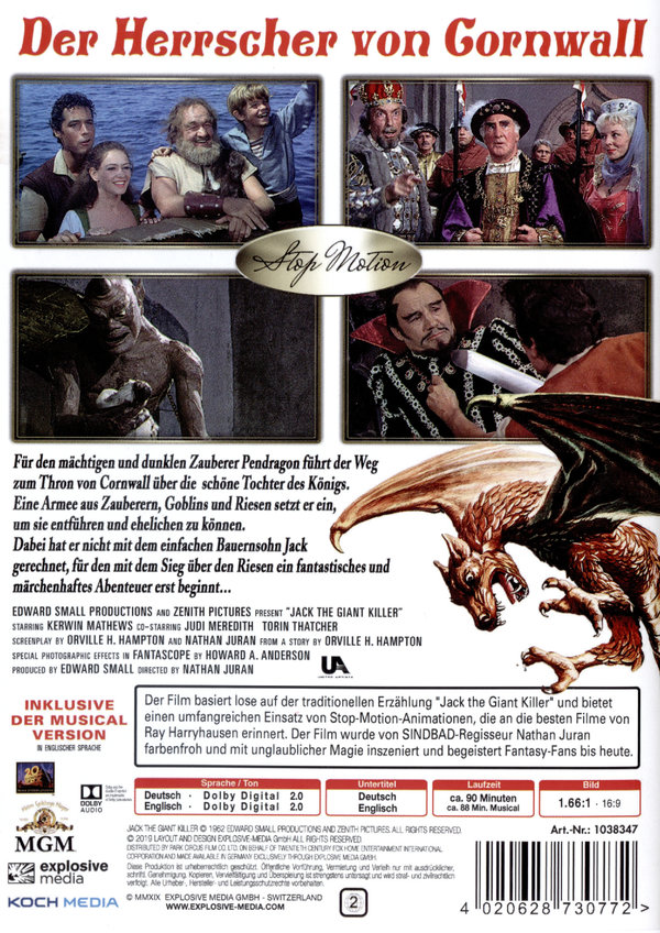 Der Film DER HERRSCHER VON CORNWALL basiert lose auf der traditionellen Erzählung "Jack the Giant Killer" und bietet einen umfangreichen Einsatz von Stop-Motion-Animationen, die an die besten Filme von Ray Harryhausen erinnert. Der Film wurde von SINDBAD-Regisseur Nathan Juran farbenfroh und mit unglaublicher Magie inszeniert und begeistert Fantasy-Fans bis heute. Nicholas Hoult und Ewan McGregor spielten in einem aufwendig inszenierten Remake die Titelrollen.