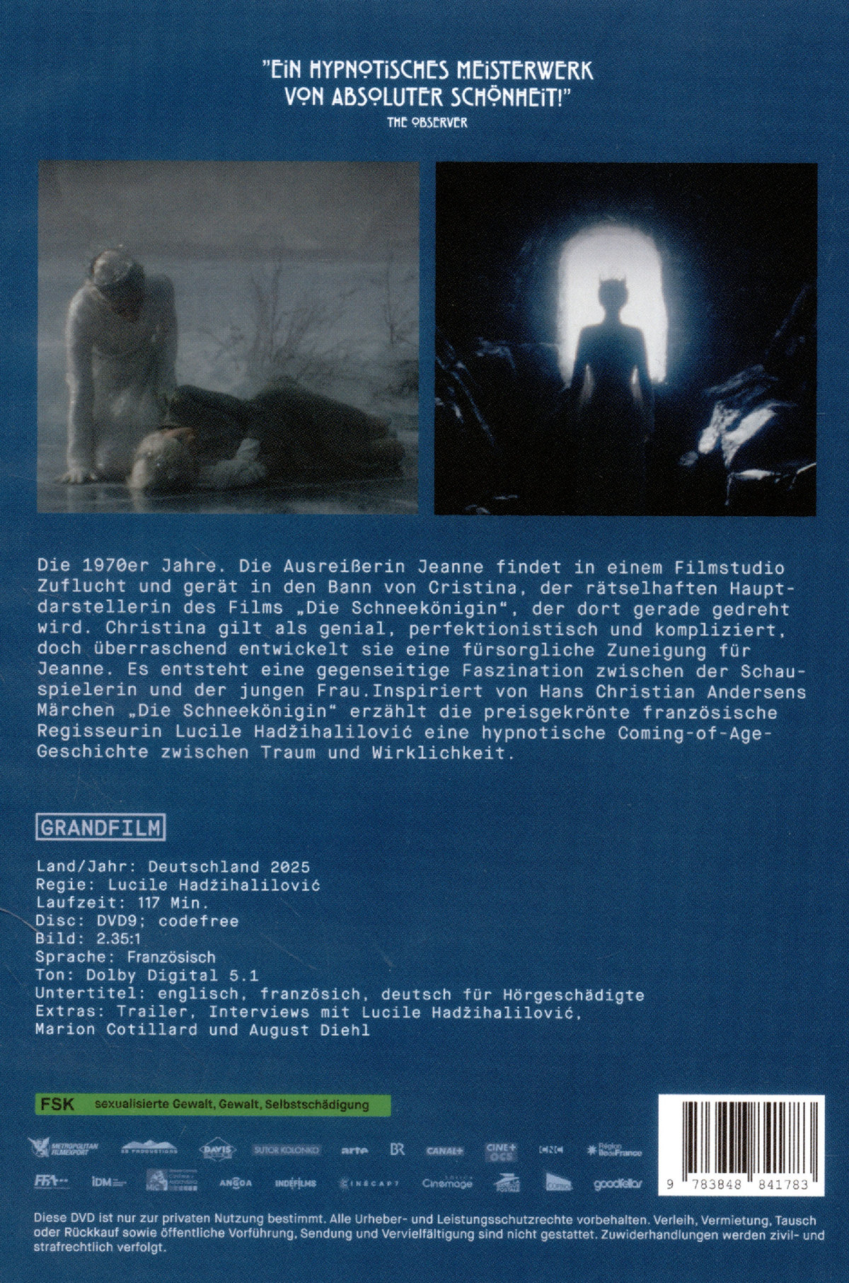 Die 1970er Jahre. Die Ausreißerin Jeanne findet in einem Filmstudio Zuflucht und gerät in den Bann von Cristina, der rätselhaften Hauptdarstellerin des Films „Die Schneekönigin", der dort gerade gedreht wird. Christina gilt als genial, perfektionistisch und kompliziert, doch überraschend entwickelt sie eine fürsorgliche Zuneigung für Jeanne. Es entsteht eine gegenseitige Faszination zwischen der Schauspielerin und der jungen Frau. Inspiriert von Hans Christian Andersens Märchen „Die Schneekönigin" erzählt die preisgekrönte französische Regisseurin Lucile Hadžihalilovi? eine hypnotische Coming-of-Age-Geschichte zwischen Traum und Wirklichkeit.