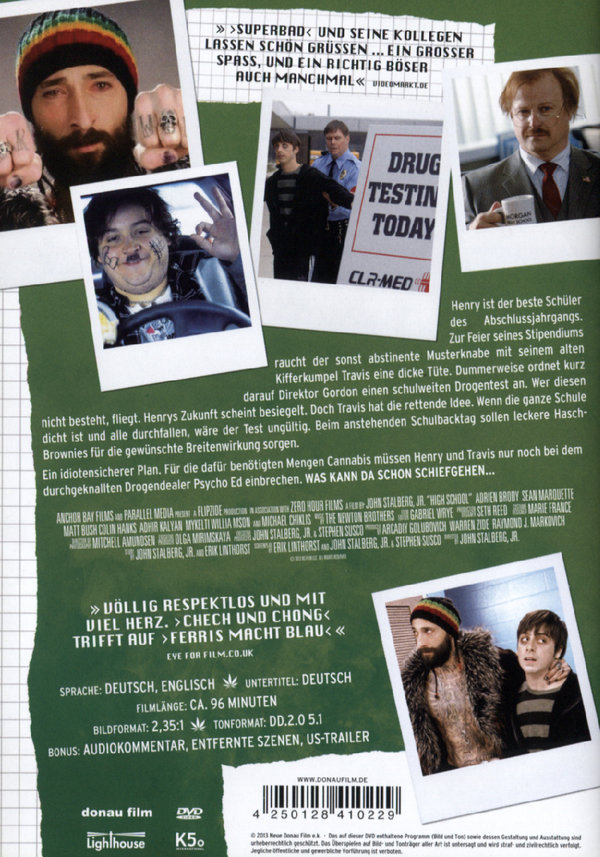 Henry ist der beste Schüler des Abschlussjahrgangs. Zur Feier seines Stipendiums raucht der sonst abstinente Musterknabe mit seinem alten Kifferkumpel Travis eine dicke Tüte. Dummerweise ordnet kurz darauf Direktor Gordon einen schulweiten Drogentest an. Wer diesen nicht besteht, fliegt. Henrys Zukunft scheint besiegelt. Doch Travis hat die rettende Idee. Wenn die ganze Schule dicht ist und alle durchfallen, wäre der Test ungültig. Beim anstehenden Schulbacktag sollen leckere Hasch-Brownies für die gewünschte Breitenwirkung sorgen. Ein idiotensicherer Plan. Für die dafür benötigten Mengen Cannabis müssen Henry und Travis nur noch bei dem durchgeknallten Drogendealer Psycho Ed einbrechen. Was kann da schon schiefgehen...