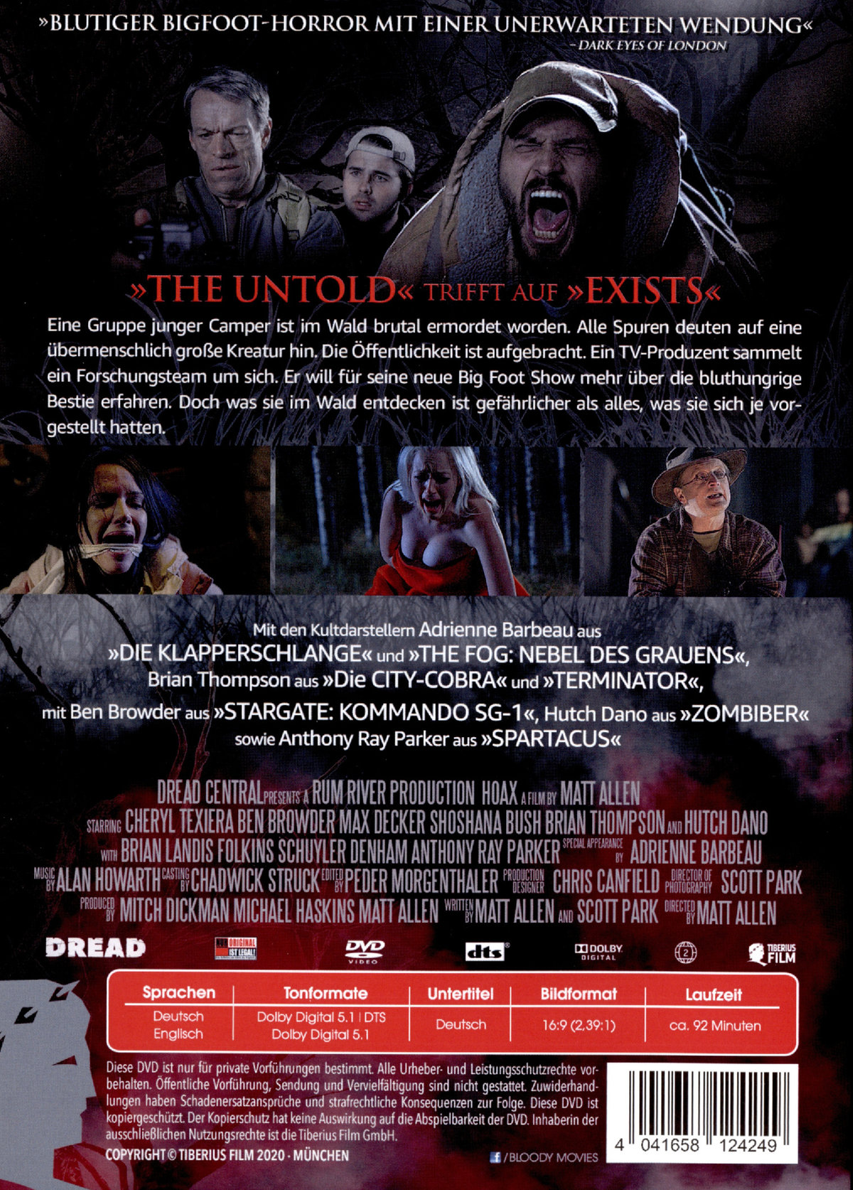 Fesselnder Bigfoot-Horror-Mix aus „Jurassic Park“ und „Texas Chainsaw Massacre”. Großartig besetzt mit Adrienne Barbeau („The Fog - Nebel des Grauens”, „Die Klapperschlange”), Brian Thompson („Die City Cobra“, „Akte X: Die unheimlichen Fälle des FBI“ (TV)) und Ben Browder („Stargate SG-1“ (TV), „Farscape“ (TV)).