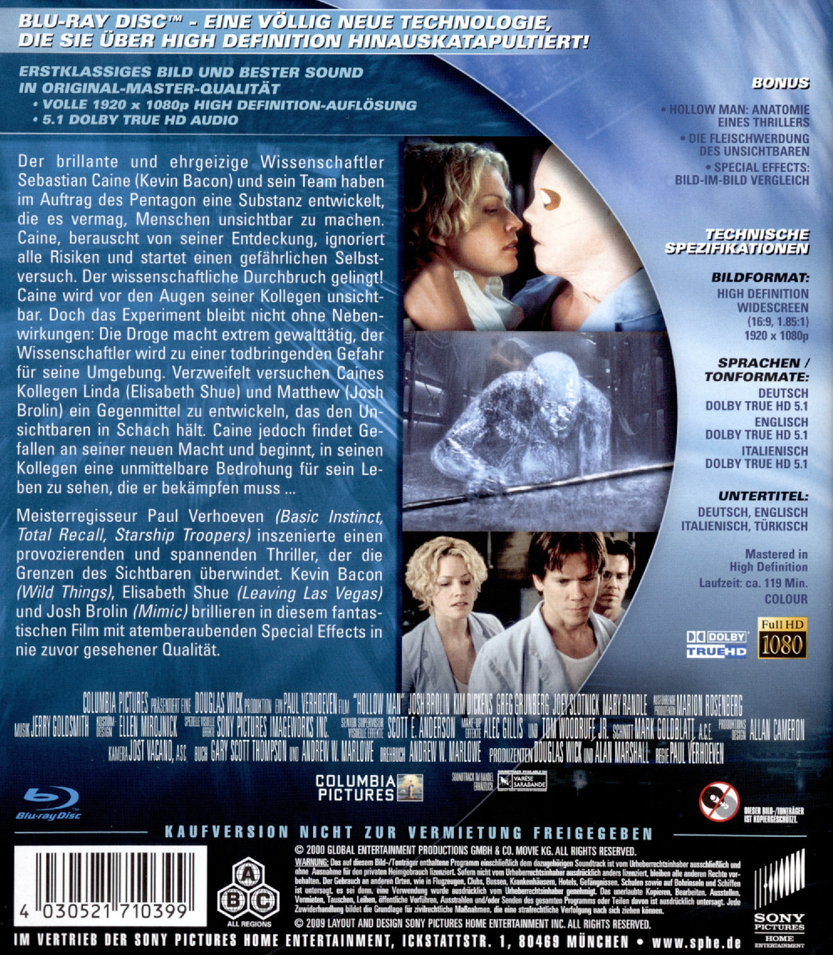 Produktinformationen "Hollow Man - Unsichtbare Gefahr (blu-ray)"