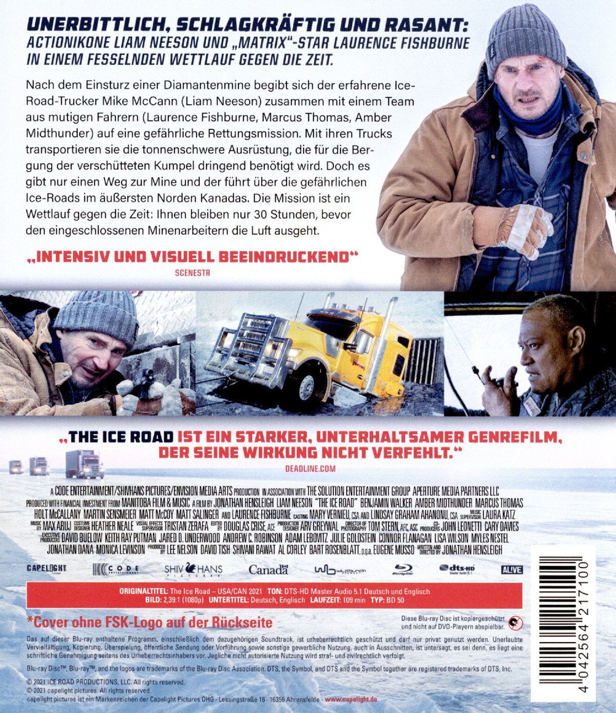 - "THE ICE ROAD ist ein starker, unterhaltsamer Genrefilm, der seine Wirkung nicht verfehlt" - (deadline.com)
