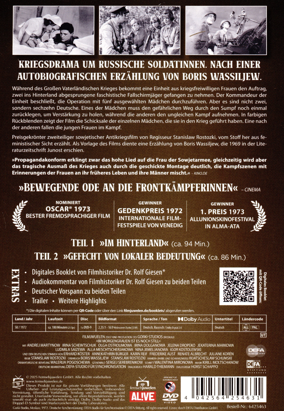Während des Großen Vaterländischen Krieges bekommt eine Einheit aus kriegsfreiwilligen Frauen den Auftrag, zwei ins Hinterland abgesprungene faschistische Fallschirmjäger gefangenzunehmen. Der Kommandeur der Einheit beschließt, die Operation mit fünf ausgewählten Mädchen durchzuführen. Aber es sind nicht zwei, sondern sechzehn Deutsche. Eines der Mädchen muss den gefährlichen Weg durch den Sumpf noch einmal zurücklegen, um Verstärkung zu holen, während die anderen den ungleichen Kampf aufnehmen. In farbigen Rückblenden zeigt der Film die Schicksale der einzelnen Mädchen, die sie in den Krieg geführt haben. Eine nach dem anderen fallen die jungen Frauen im Kampf. - Als Vorlage des Films diente eine Erzählung von Boris Wassiljew, die 1969 in der Literaturzeitschrift Junost erschien.