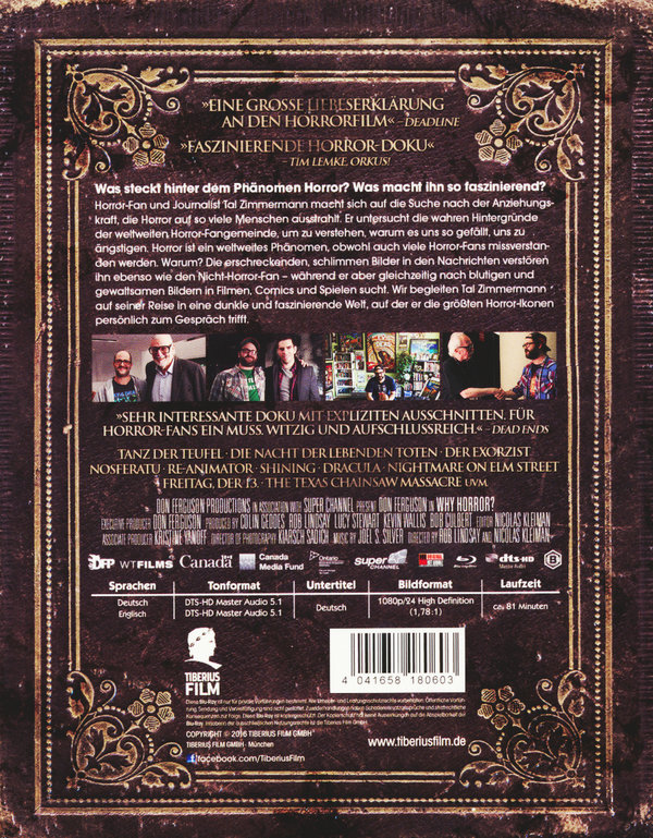 Was steckt hinter dem Horror? Was macht ihn so faszinierend? Horror-Fan und Journalist Tal Zimmermann macht sich auf die Suche nach der Anziehungskraft, die Horror auf so viele Menschen ausstrahlt. Er untersucht die wirklichen Hintergründe dieses weltweiten Fangemeinde des "Horror", um zu verstehen, warum wir uns so gefällt, uns zu ängstigen. Es ist ganz einfach. Horror hat eine große Faszination oder wird auf ganzer Linie abgelehnt – sofort. Es ist ein weltweites Phänomen, obwohl auch viele Horror-Fans missverstanden werden. Doch warum? Warum verstören ihn selbst erschreckende Bilder in den Nachrichten - während er aber gleichzeitig nach blutigen und gewaltsamen Bildern in Filmen, Comics und Spielen sucht. Tal Zimmermann auf einer Reise in eine dunkle und faszinierende Welt.