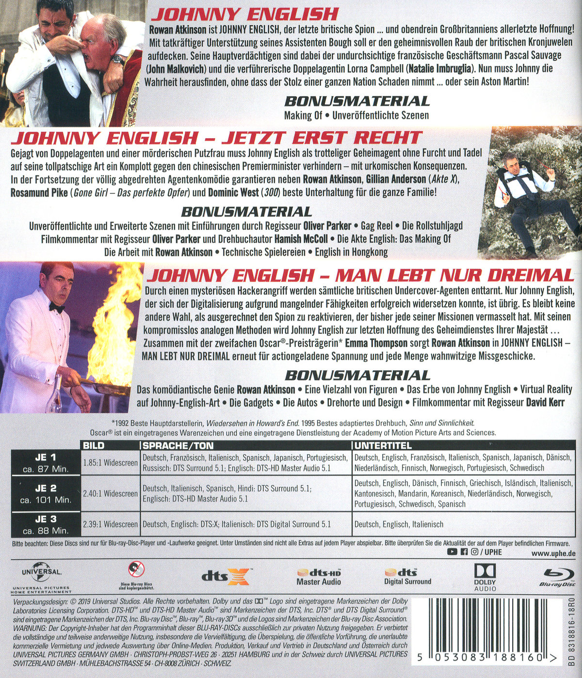 Tonformat: DTS Surround 5.1 Deutsch, Französisch, Italienisch, Spanisch, Japanisch, Portugiesisch, Russisch; DTS HD Master Audio 5.1 Englisch;