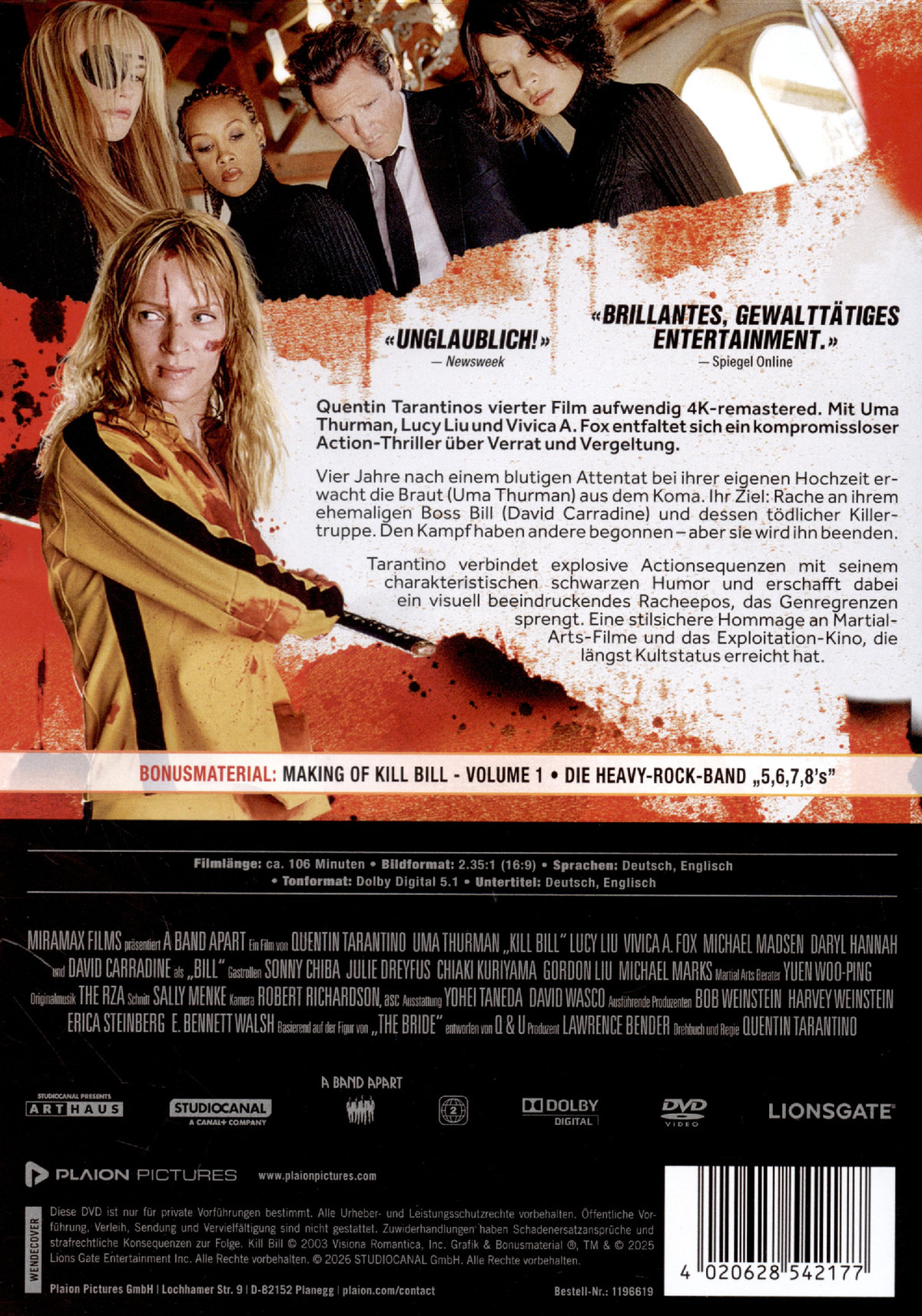Quentin Tarantinos vierter Film lässt Uma Thurman und Lucy Liu in einem der blutigsten Duelle der Kinogeschichte aufeinandertreffen. Unzensierter Tarantino-Style und Martial-Arts vom Feinsten!