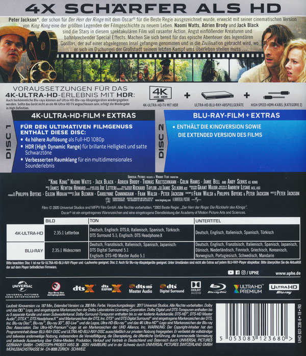 Bonus auf der Blu-ray: Rekonstruktion des achten Wunders: Das Making-of von King Kong - Dokumentation über die Entstehung von Kong in Filmlänge mit über 3 Stunden "Hinter-den-Kulissen"-Informationen;