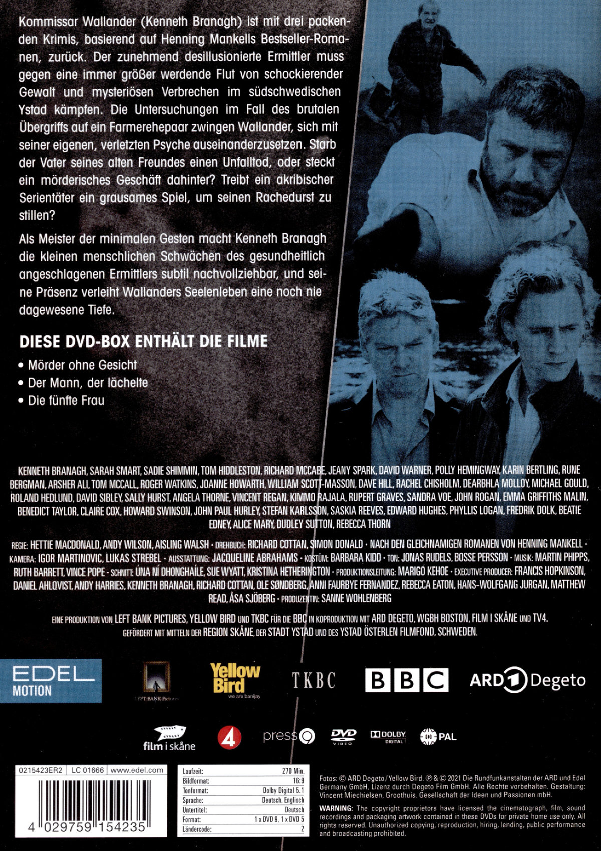 Als Meister der minimalen Gesten macht Kenneth Branagh die menschlichen Schwächen Wallanders subtil nachvollziehbar und verleiht dessen Seelenleben eine noch nie dagewesene Tiefe.
