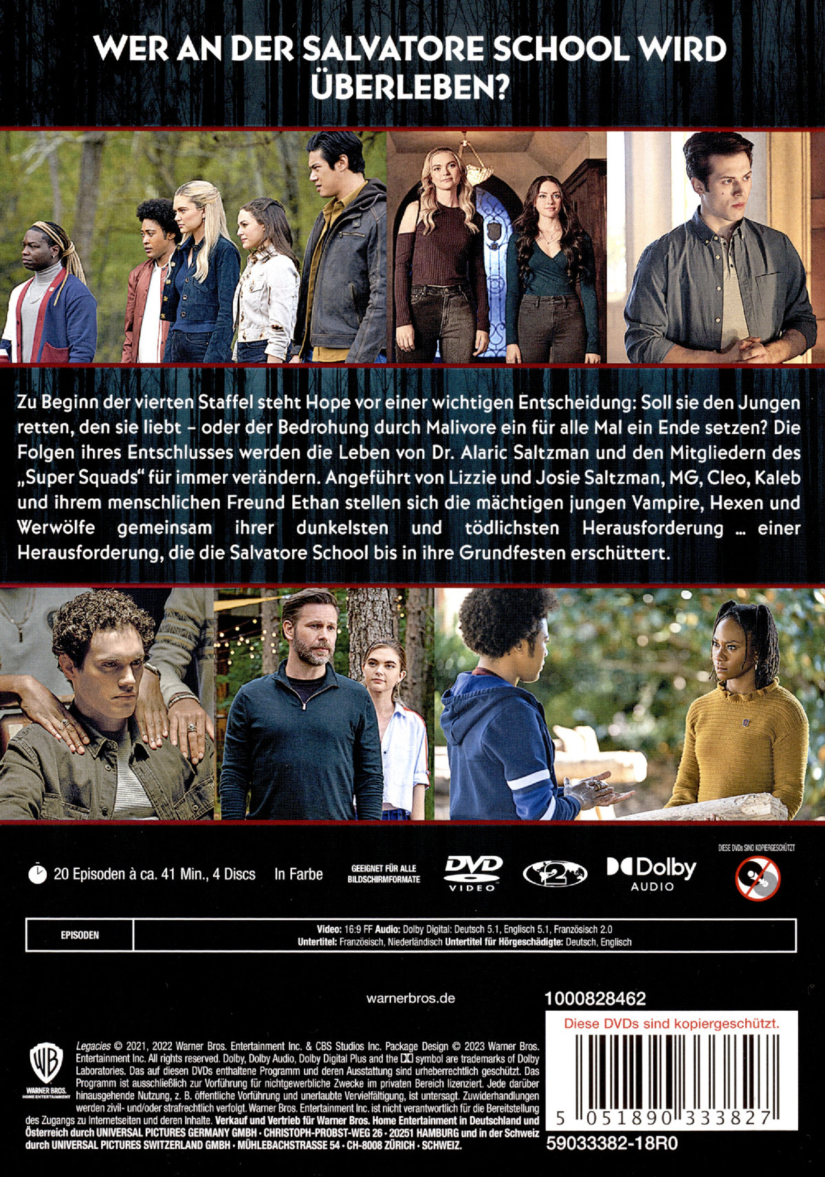 Zu Beginn der vierten Staffel steht Hope vor einer wichtigen Entscheidung: Soll sie den Jungen retten, den sie liebt - oder der Bedrohung durch Malivore ein für alle Mal ein Ende setzen? Die Folgen ihres Entschlusses werden die Leben von Dr. Alaric Saltzman und der Mitglieder des "Super Squads" für immer verändern. Angeführt von Lizzie und Josie Saltzman, MG, Cleo, Kaleb und ihrem menschlichen Freund Ethan stellen sich die mächtigen jungen Vampire, Hexen und Werwölfe gemeinsam ihrer dunkelsten und tödlichsten Herausforderung … einer Herausforderung, die die Salvatore School bis in ihre Grundfesten erschüttert.