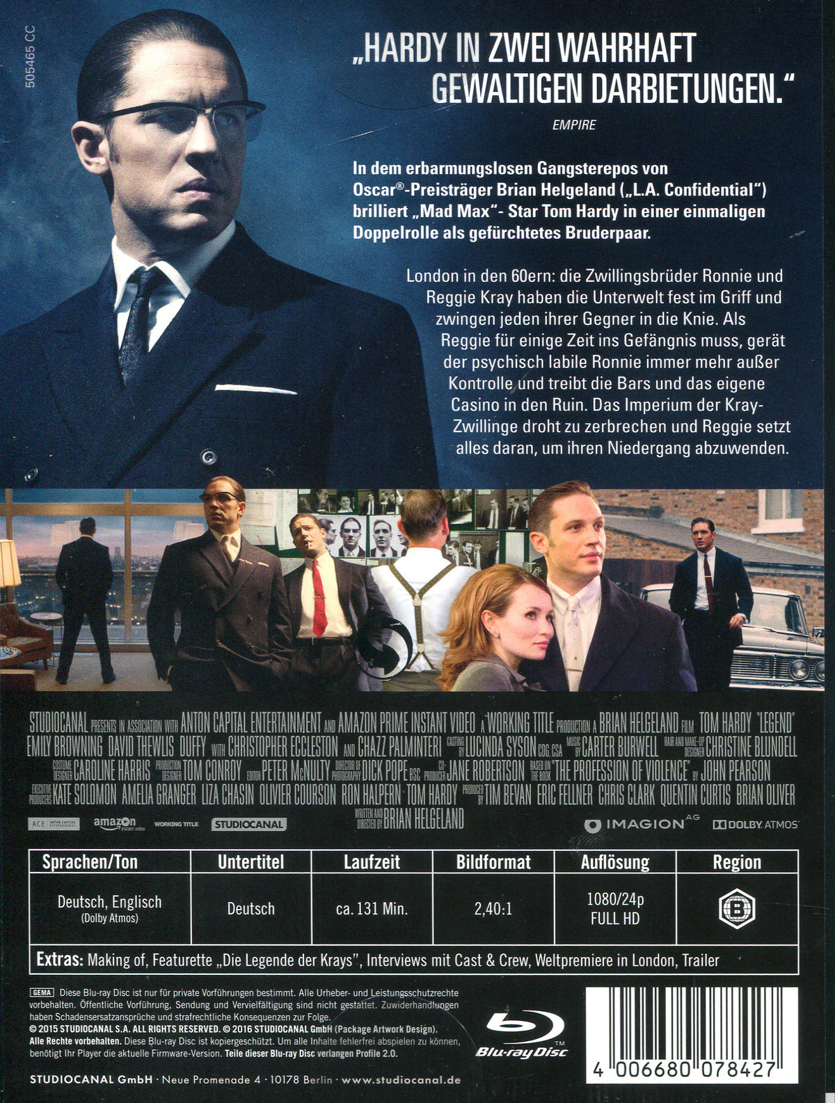 Die berüchtigten Kray-Zwillinge Ron und Reggie regieren in den Swinging Sixties die Londoner Unterwelt und haben es zu zweifelhaftem Ruhm gebracht. Doch die Geschäfte, die Reggie erfolgreich zu führen weiß, werden durch seinen Bruder gestört, bei dem Schizophrenie diagnostiziert wurde. Als Reggie die Frau findet, mit der er sein Leben teilen will, entspinnt sich ein perfides Spiel und dem Imperium der Kray-Zwillinge droht der Zusammenbruch.