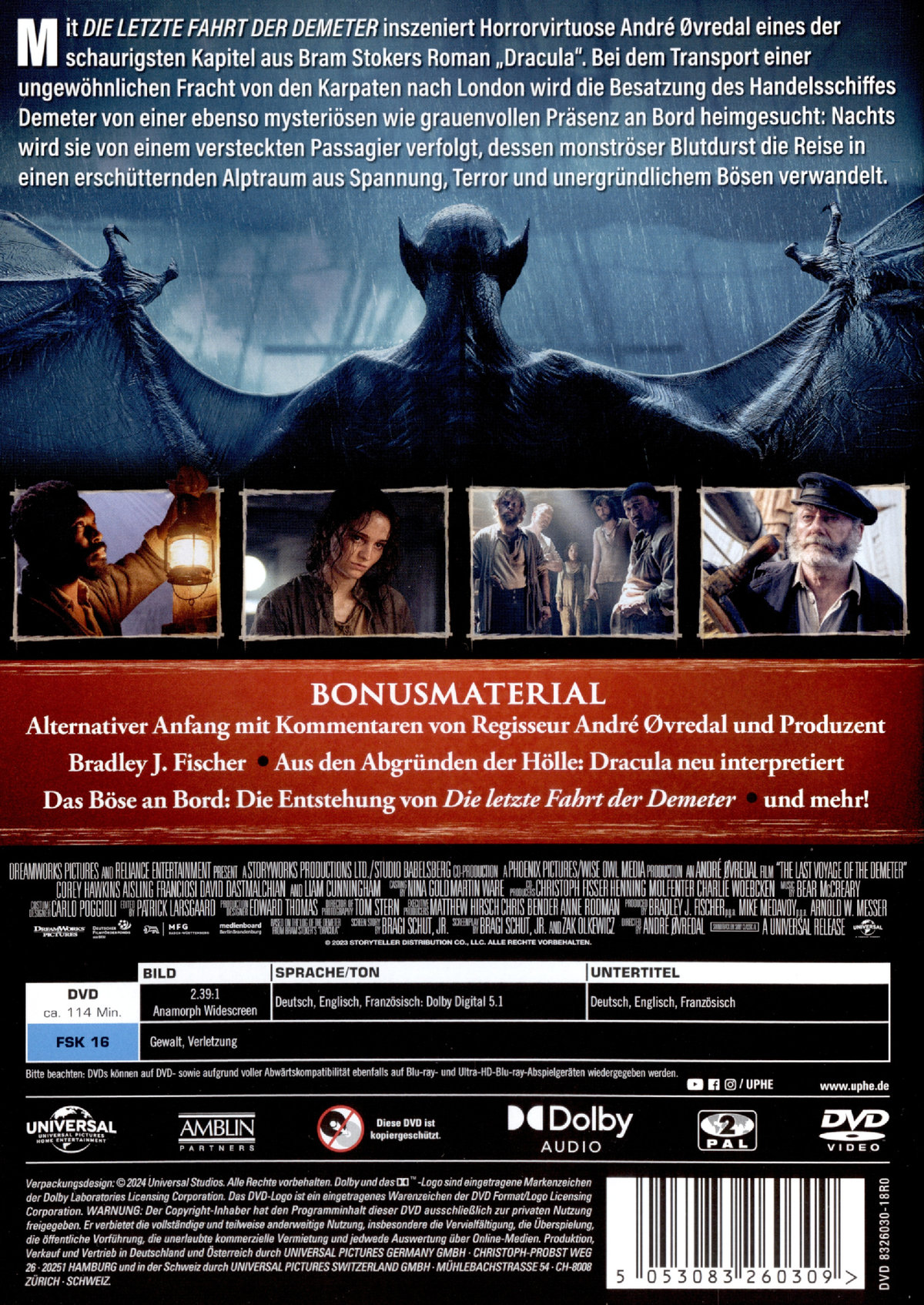 Alternativer Anfang,Unveröffentlichte Szenen,Dracula & Das digitale Zeitalter,Das Böse an Bord: Die Entstehung von "Die letzte Fahrt der Demeter",Filmkommentar mit Regisseur André Øvredal und Produzent Bradley J. Fischer, u.v.m.